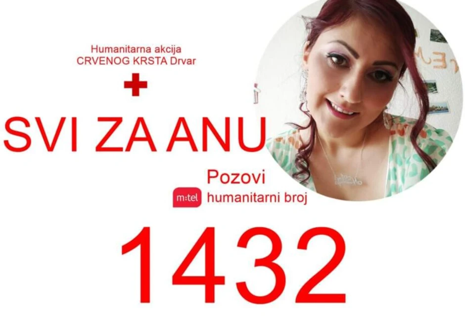 Crveni krst opštine Drvar pokrenuo je i humanitarnu akciju “Svi za Anu” u okviru koje se do 31. maja pozivom na “M:telov” broj telefona 1432 može darovati koji evro za njeno lečenje.