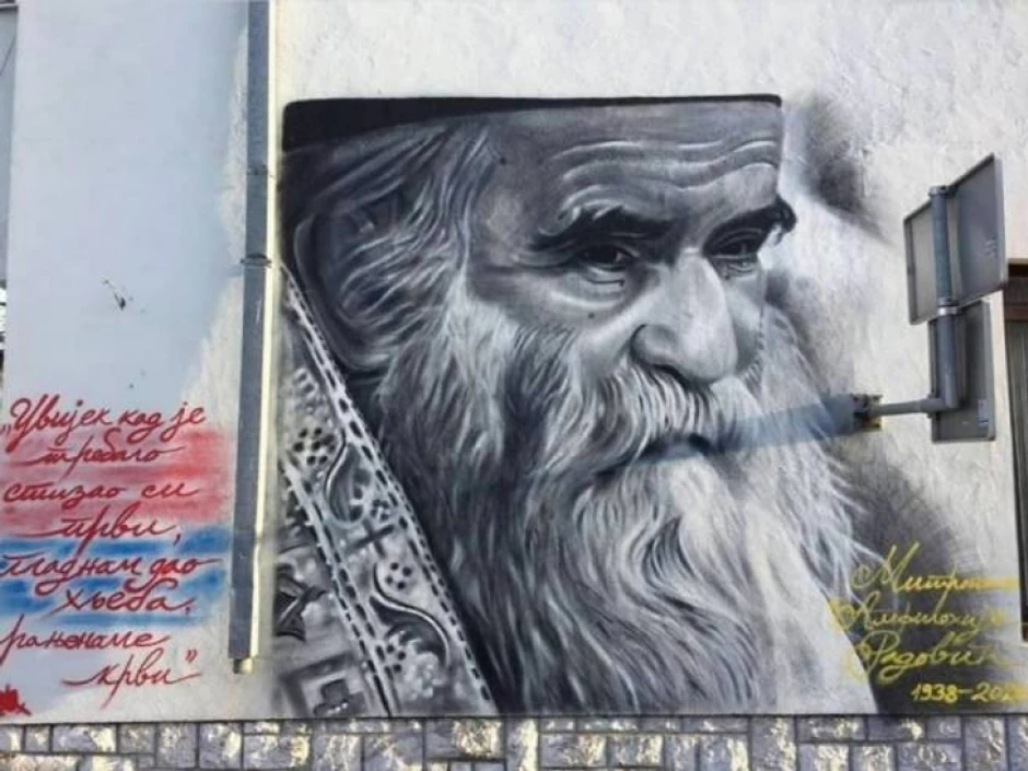Na centralnom trgu u Nevesinju oslikan je mural u čast nedavno preminulog mitropolita crnogorsko-primorskog Amfilohija.