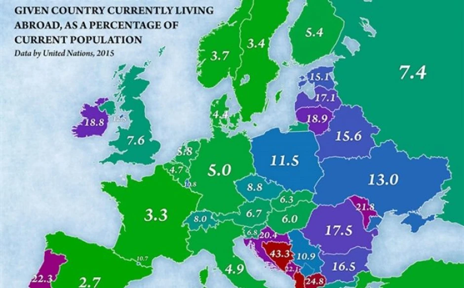 Prema novoj karti Evrope, Jakuba Mariana, Bosna i Hercegovina je na vrhu liste evropskih zemalja po broju ljudi koji su iz nje emigrirali.