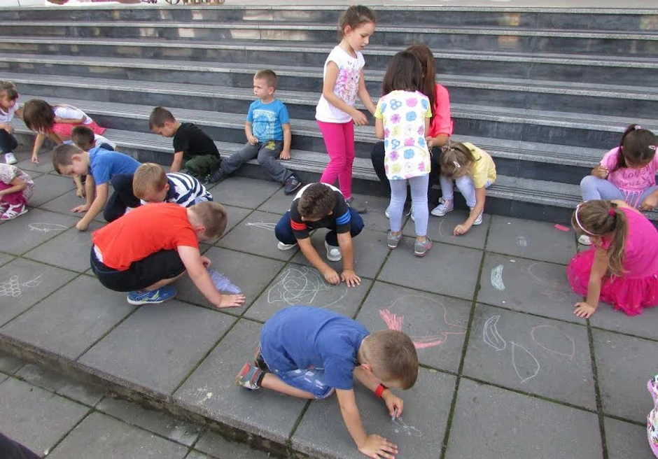 To je veoma maštovito za decu koja su jesenjim motivima, najviše voća, spontano iscrtala pločnike u gradu.
