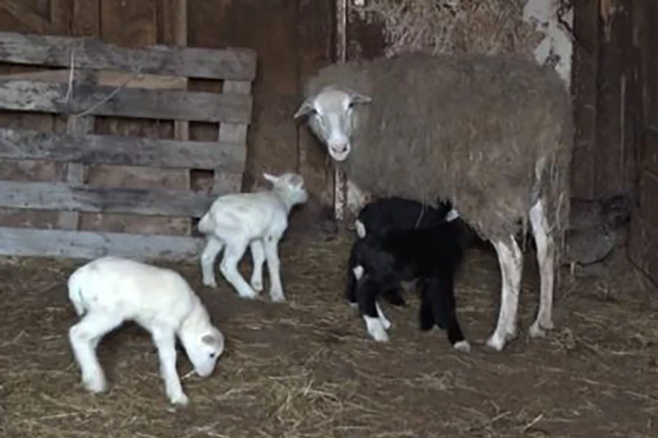Umesto dva jagnjeta, kako su očekivali, ovca je na svet donela četvoro i to tri ovčice i jednog ovna. I podmladak se podelio pa je dvoje crno na tatu, a dvoje belo na mamu.
