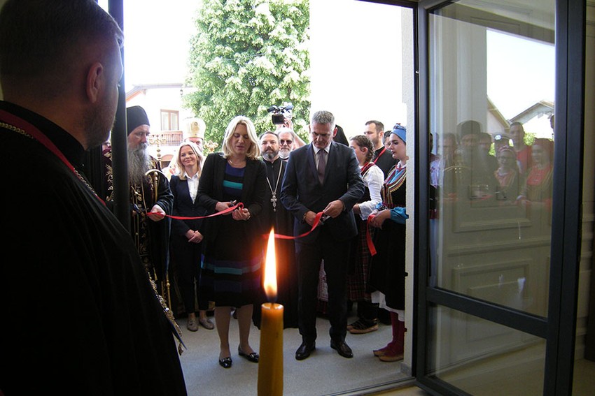 Svečanim presecanjem vrpce Kulturno-administrativni centar otvorili su Željka Cvijanović, predsednica Republike Srpske i Siniša Milić, gradonačelnik Brčkog nakon čega je obavljen čin osvećenja.