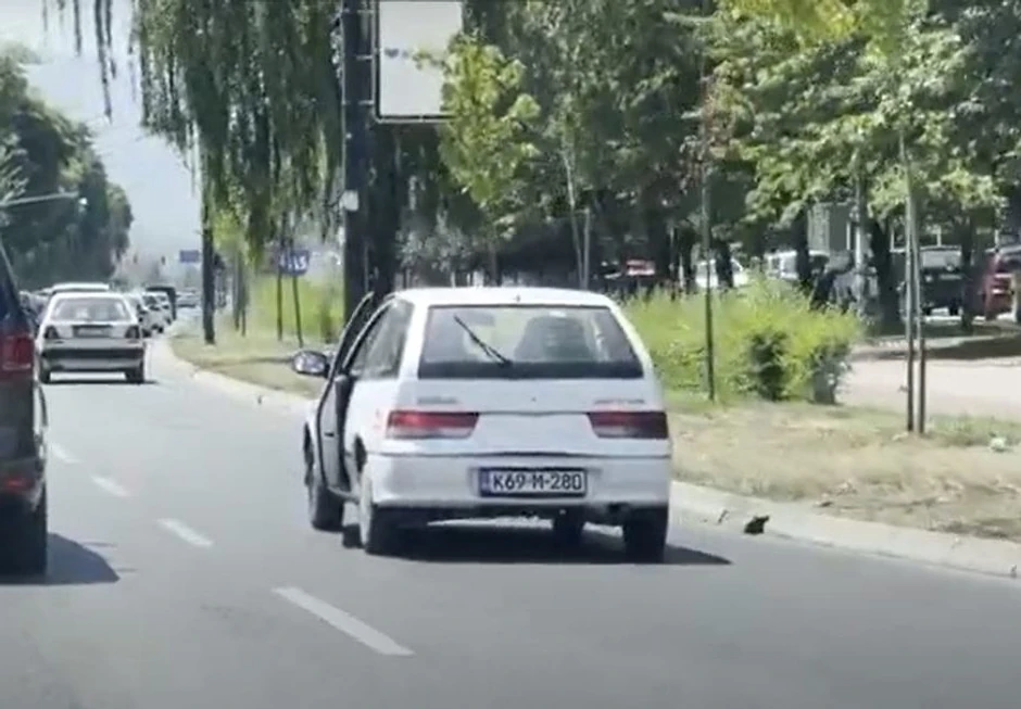 Snimak zabeležen danas u Sarajevu prikazuje vozača automobila marke Suzuki koji je tokom vožnje otvarao vrata svog vozila, piše Srpskainfo.