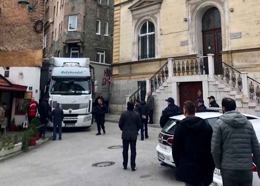 Kamion je ostao zaglavljen između stambene zgrade i zgrade Katoličkog bogoslovnog fakulteta, a ne mestu se nalazi i nekoliko patrola sarajevske policije koja vozaču pokušava pomoći.