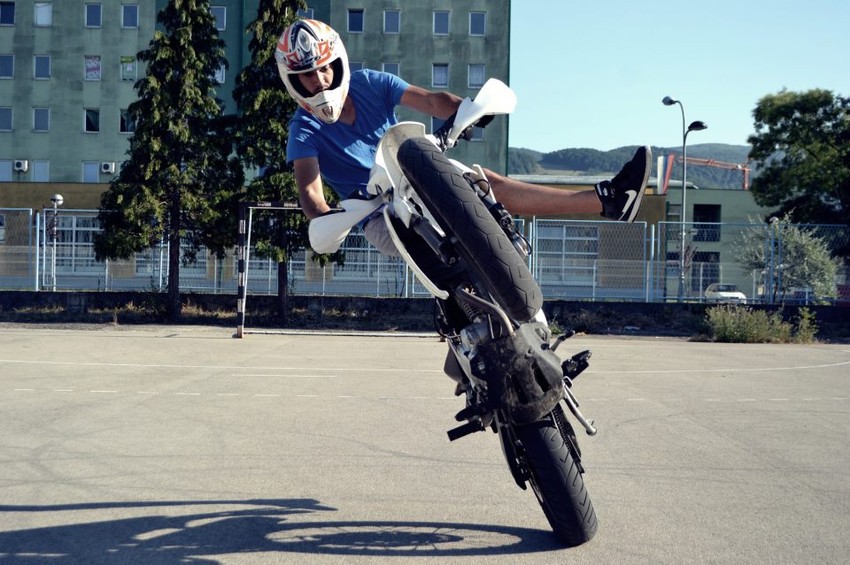 Banjalučanin Nemanja Mihajlović, jedini profesionalni stunt vozač u Bosni i Hercegovini, kaže da mu ovaj ekstremni sport - slobodni stil akrobatske vožnje motocikla pruža osećaj slobode i superiornosti.