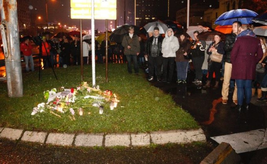 Ispred Zemaljskog muzeja BiH u Sarajevu, na mestu gde su protekle noći u stravičnom udesu poginule Selma Agić (21) i Edita Malkoč (20), večeras se okupilo više stotina građana.