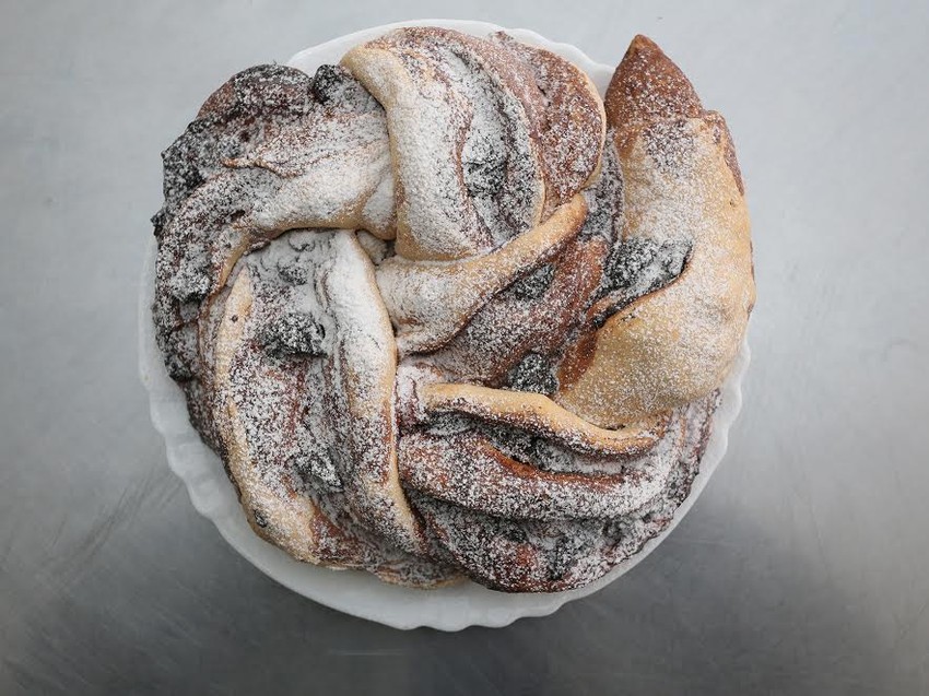 • Nakon što je testo nadošlo, premesiti ga, razvaljati na dve trake i premazati pekmezom