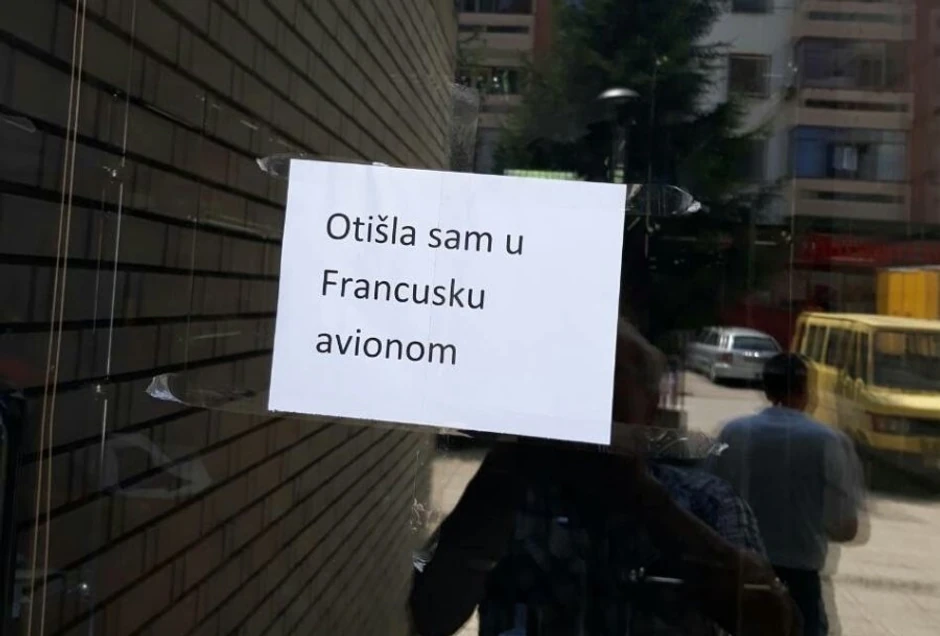 Poruka “Otišla sam u Francusku avionom” osvanula je na jednoj fočanskoj krojačkoj radnji, bar ako je verovati domaćim tviterašima.