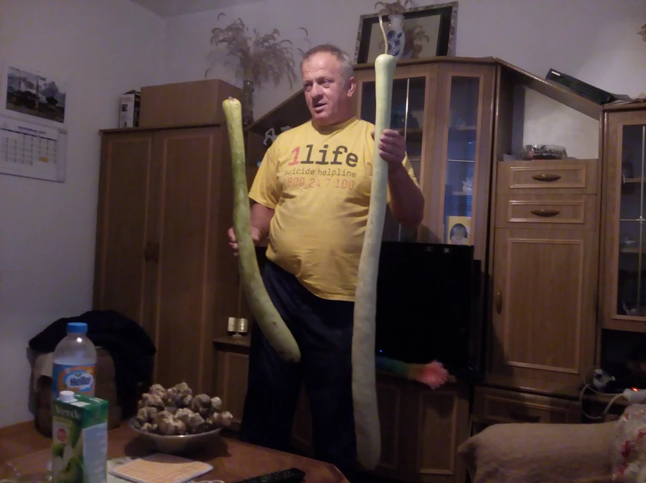 Ove jeseni u domu Edina i Redžife Tabaković pažnju privlače i tikve koje su dostizale dužinu do dva metra, a pošto su mekane mogu se koristiti i u ljudskoj ishrani.