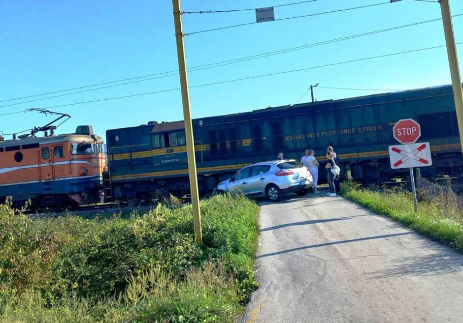 Putnički voz "Željeznica Republike Srpske" (ŽRS) naleteo je jutros na automobil na putnom prelazu Radinjača, između stanica Ramići i Potkozarje, prilikom čega nije bilo povređenih, saopšteno je iz ovog preduzeća.