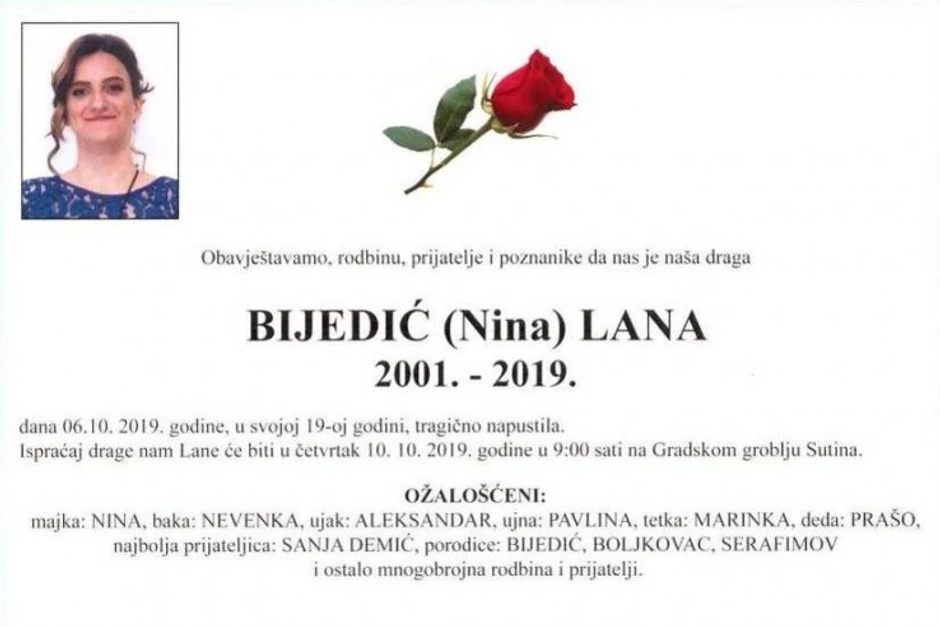 Ko je ubio ovu mladu Mostarku dan pre nego što je kao brucoš trebala zakoračiti u novi svet, potpuna je nepoznanica. Brojna pitanja su i dalje otvorena… Od toga gde se tačno i s kim zaputila kada je u nedelju u podne zatvorila vrata svoga doma u Severnom Logoru, gde je živela s majkom Ninom, profesorkom i dekanom Fakulteta informacijskih tehnologija (FIT) u Mostaru.