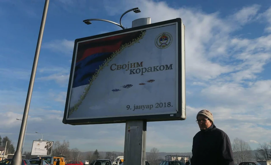 Na bilbordima stoje poruke „Svojim korakom“ i „Misli na otadžbinu“, a dizajn upotpunjuje fragment spomenika narodnog tribuna i književnika Petra Kočića, koji od 1932. stoji u centru grada.