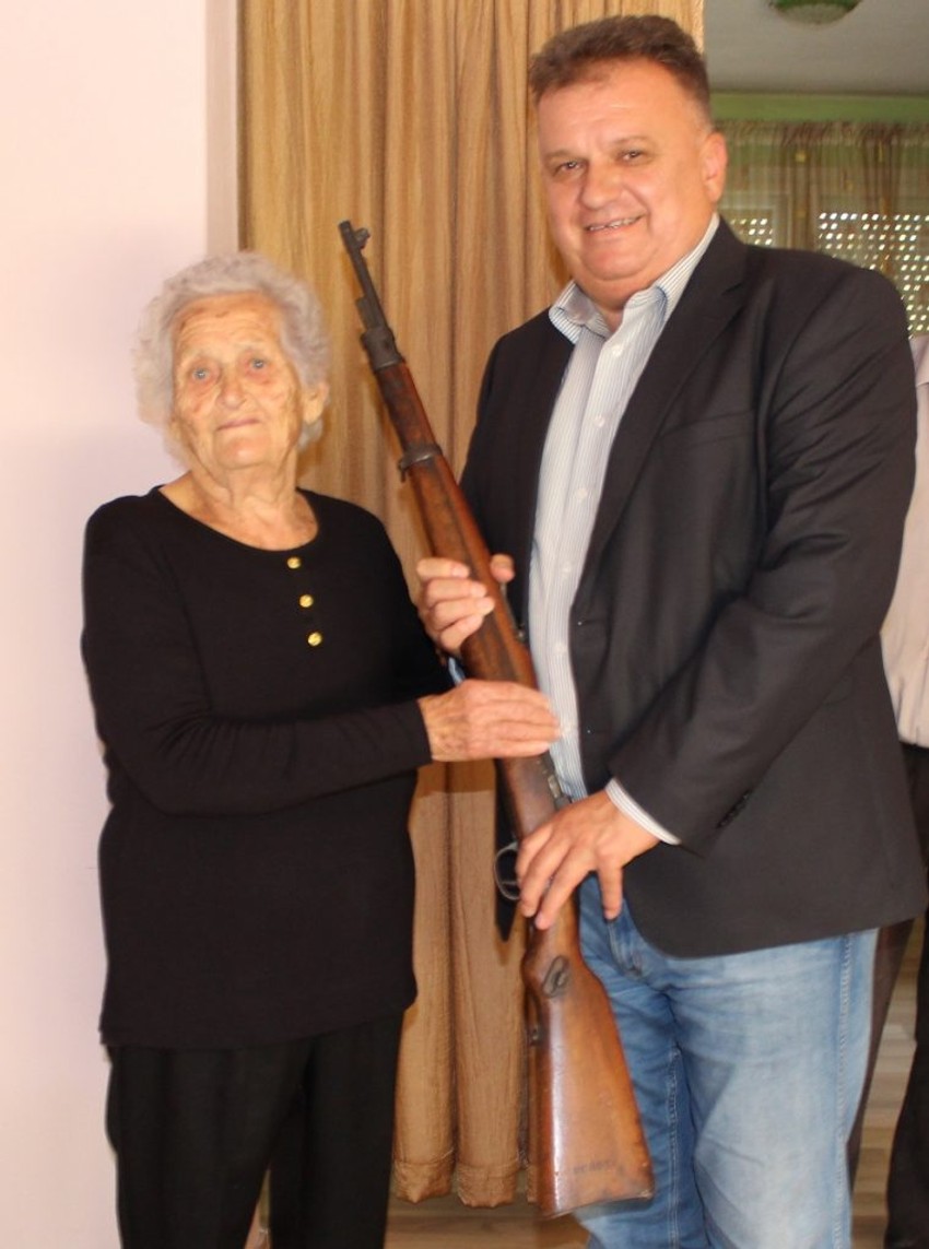 Načelniku Gradiške Zoranu Adžiću, koji je došao kod nje u posetu, pokazala je pušku koju je zarobila 1942. godine u Dragotinji, gde je i ranjena.