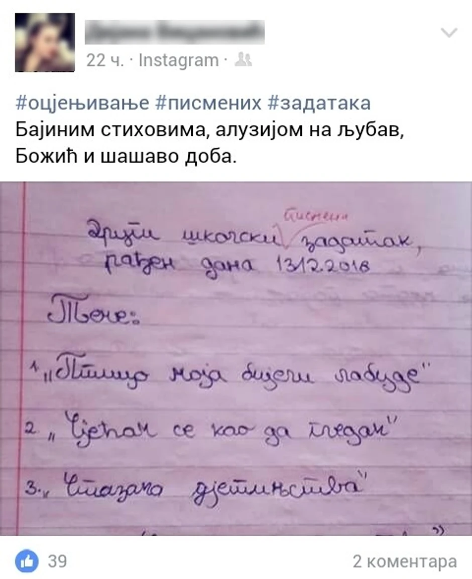 U mejlu, čitateljka ističe “da se na primeru samo jedne fotografije vidi kakvo nam je zaista stanje u obrazovanju, te koliko su profesori srpskog jezika i književnosti inovativni u kreiranju tema za školske pismene zadatke”.