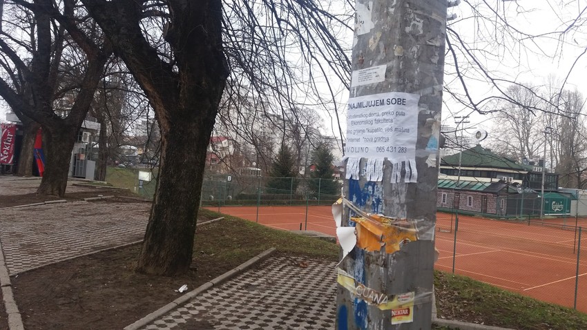 Najviše izlepljenjih stabala i bandera nalazi okolini fakulteta, gde stanodavci često lepe plakate i studentima nude stanove.