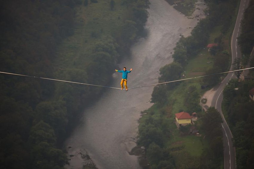 Naime, Mitermajer je prešetao kanjon Tijesno u Banjaluci i to ni manje, ni više, nego na najlonskom užetu.