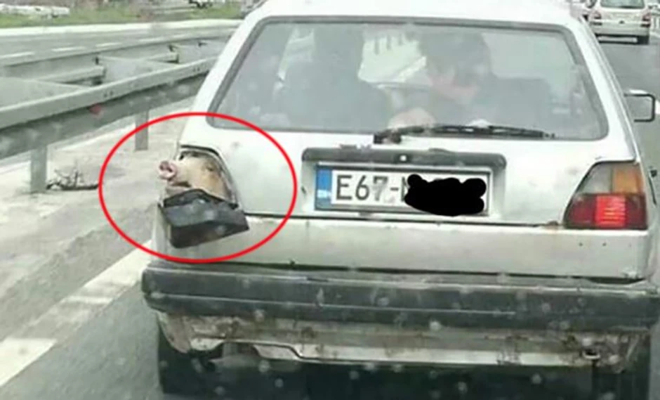 Dovitljivosti vozača u BiH nema granica. Tako je jedan od njih, u neimenovanom gradu, strpao u svoj „golf“ prase, koje je verovatno čekala neslavna sudbina.
