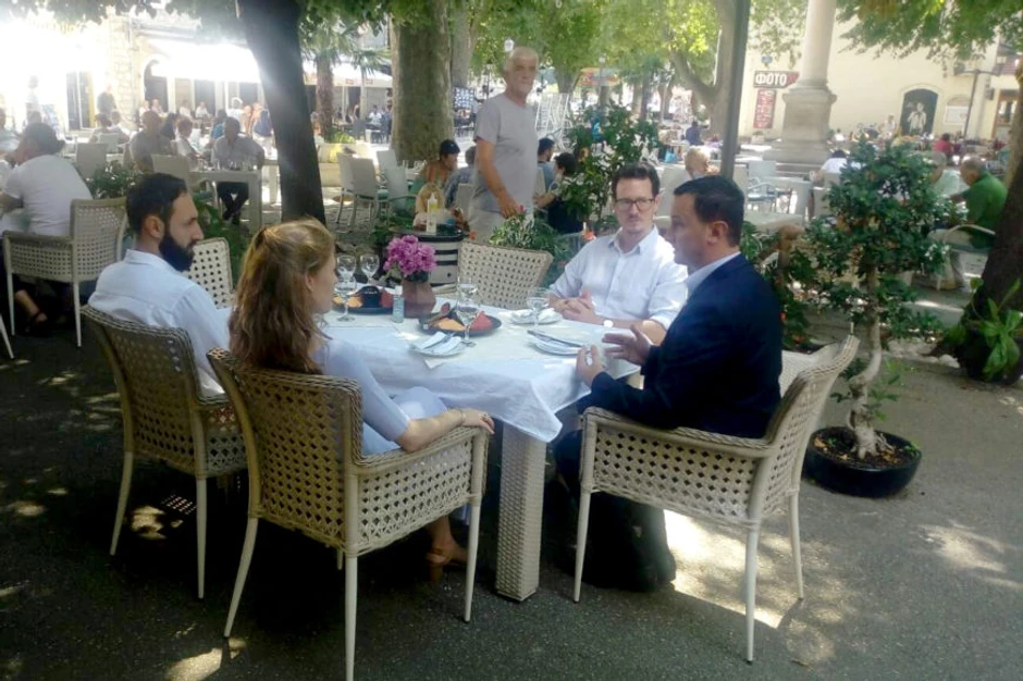 Danas su kafu popili sa gradonačelnikom Trebinja Mirkom Ćurićem u bašti hotela uz trebinjsku pijacu. Princ i njegova supruga sa sinom Stefanom odseli su hotelu u centru grada, a vreme provode obilazeći znamenitosti grada i trebinjske vinarije, piše Srpskainfo.