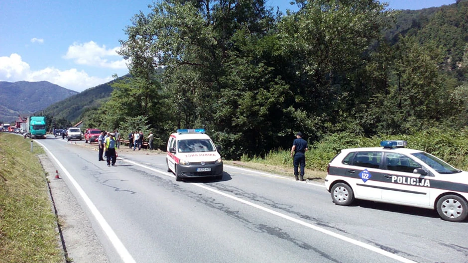 Dodaje kako se vozač nalazi u kamionu, povređen, sa neutvrđenim stepenom povreda.