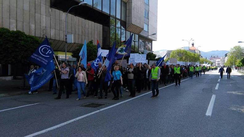 Sindikalci su oko 10 časova krenuli u protestnu šetnju naoružani brojnim transparentima koji ukazuju na nezadovoljstvo položajem radnika u RS, a na jednom od transparenta je i lik čuvenog kubanskog revolucionara Ernesta Če Gevare.