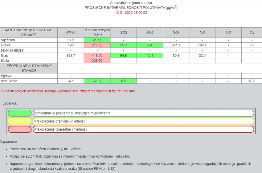 Podsećemo, zbog izrazito pogoršanih vrednosti kvaliteta vazduha, Vlada Kantona Sarajevo proglasila je stepen upozorenja “uzbuna” i izdala važna uputstva građanima u vezi sa boravkom na otvorenom, fizičkim aktivnostima, nošenju zaštitinih maski kao i korišćenju motornih vozila odnosno gradskog prevoza.