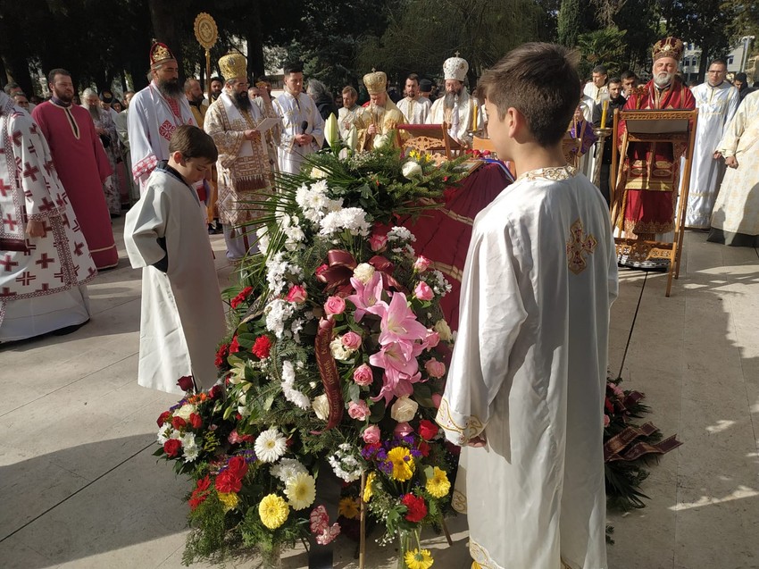 Jutarnju službu i opelo predovodi Mitroplit dabro-bosanski Hrizostom uz sasluženje episkopa žičkog Justina, diseldorfskog i njemačkog Grigorija, budimljansko-nikšićko i administratora Mitropolicje Crnogrosko-primorse Joanikija, zapadnoameričkog Maksima, niškog Arsenija, južnocentralnoameričkog Kirila, dioklijskog Metodija i zahumsko-hercegovačkog i primorskog Dimitrija, prenosi Srpskainfo.
