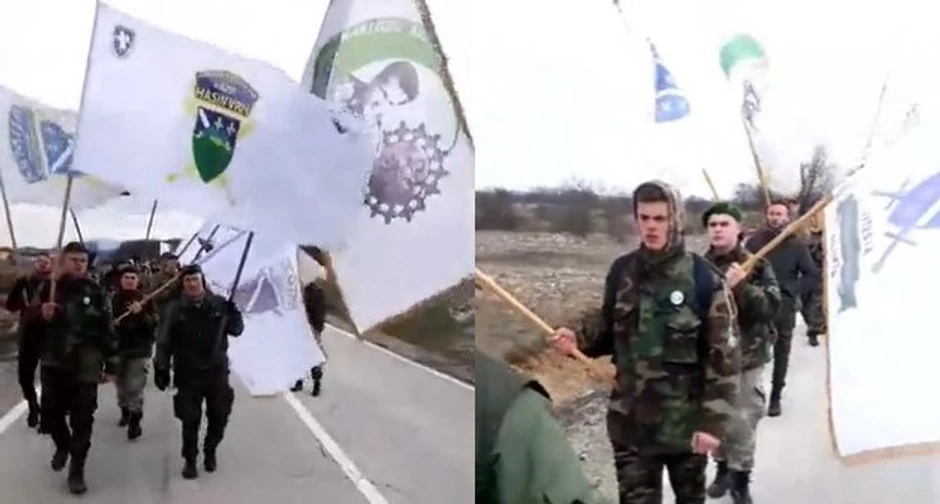 Do Hasinog Vrha defilovali su u uniformama, sa zelenim beretkama, pod ratnim zastavama tzv. Armije BiH, a na snimcima sa tog skupa, kako navodi RTRS, ima i dece.
