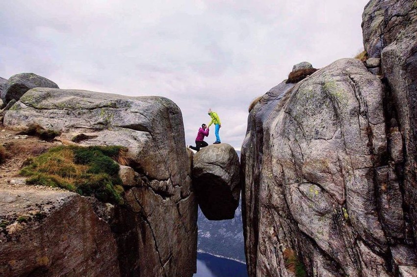 Prosidba se dogodila u Norveškoj u mestu Kjerag na kamenu kojeg drže dve stene, a mladenka je rekla da.