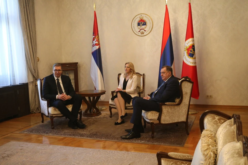 U Palati Republike u Banaluci počeo je sastanak predsednika Srbije Aleksandra Vučića sa predsednicom Srpske Željkom Cvijanović i srpskim članom i predsedavajućim Predsedništva BiH Miloradom Dodikom.