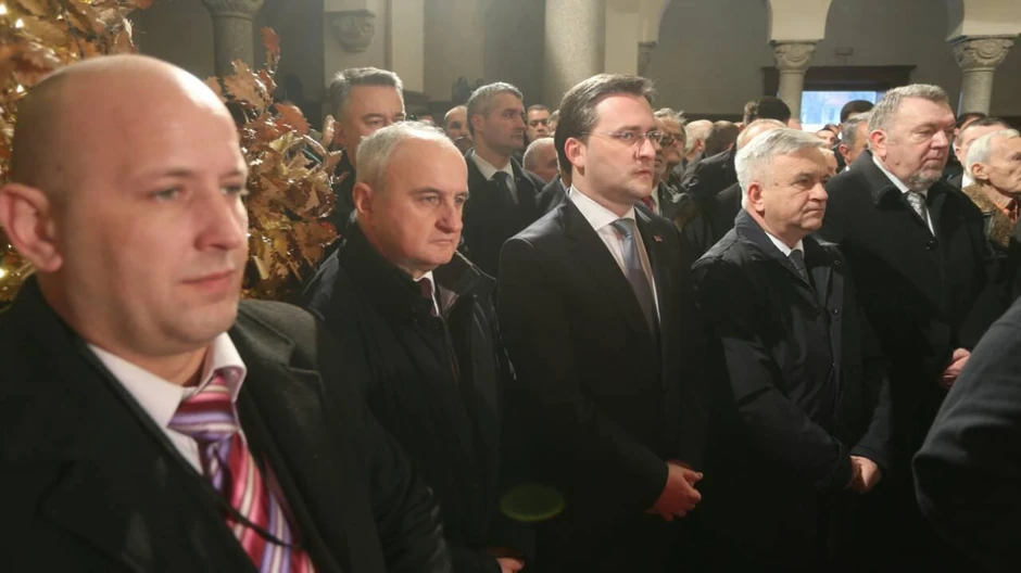 Liturgiji prisustvuju i generalni sekretar predsednika Srbije Nikola Selaković, princ Aleksandar Drugi Karađorđević i princeza Katarina, Darko Mladić, sin generala Ratka Mladića, kao i predsednici SDS, PDP i NDP Vukota Govedarica, Branislav Borenović i Dragan Čavić.