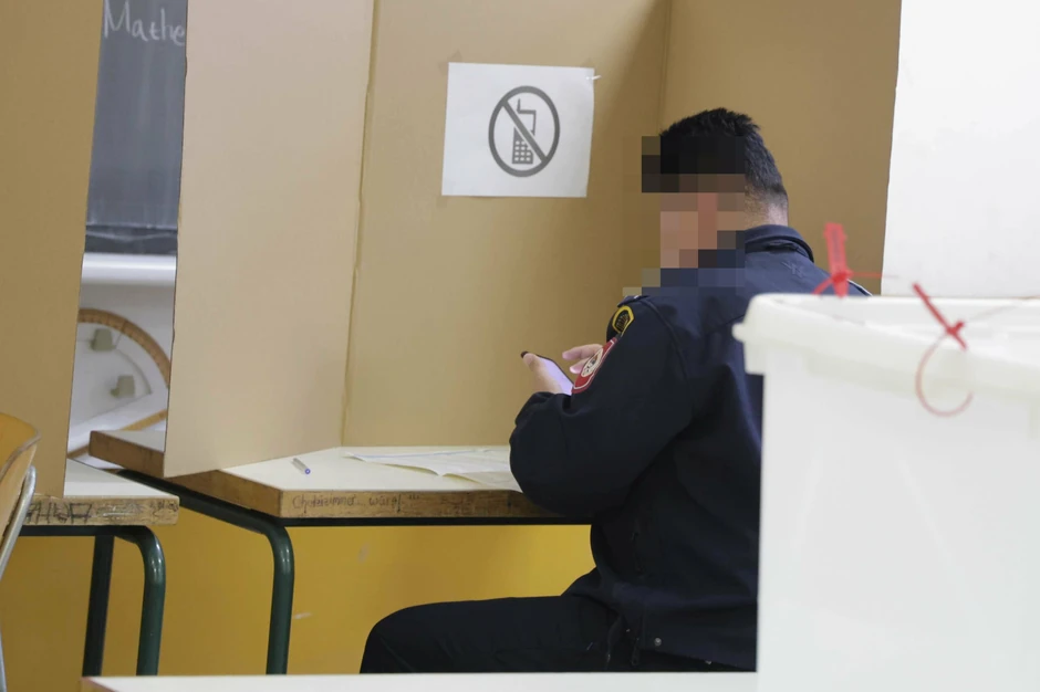 Iako je izričito zabranjena upotreba mobilnih telefona na biračkom mestu, a pogotovo slikanje ispunjenog glasačkog listića, ovaj policajac to, očigledno, ne zarezuje.