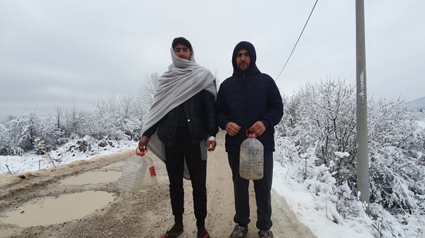 Juče, u vreme posjete reportera Avaza, ponovo nije bilo pitke vode. Migranti su ostali bez vode. Sa kanisterima u rukama krenuli su u Zavalje. Ali komšije su zavrnule ventile da ne bi cevi zaledile i popucale. Pa su migranti topili sneg i pili!