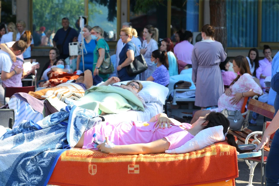 Porodilje sa tek rođenim bebama, pacijenti, trudnice, deca i radnici Univerzitetskog kliničkog centra nalaze se ispred bolnice zbog jutrošnje dojave o bombi.