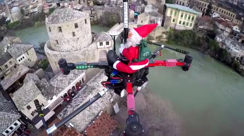 U skladu sa prazničnom atmosferom i duhom u kakvom se decembar obično obeležava, čovek u crveno belom odelu leteo je iznad Mostara na dronu.