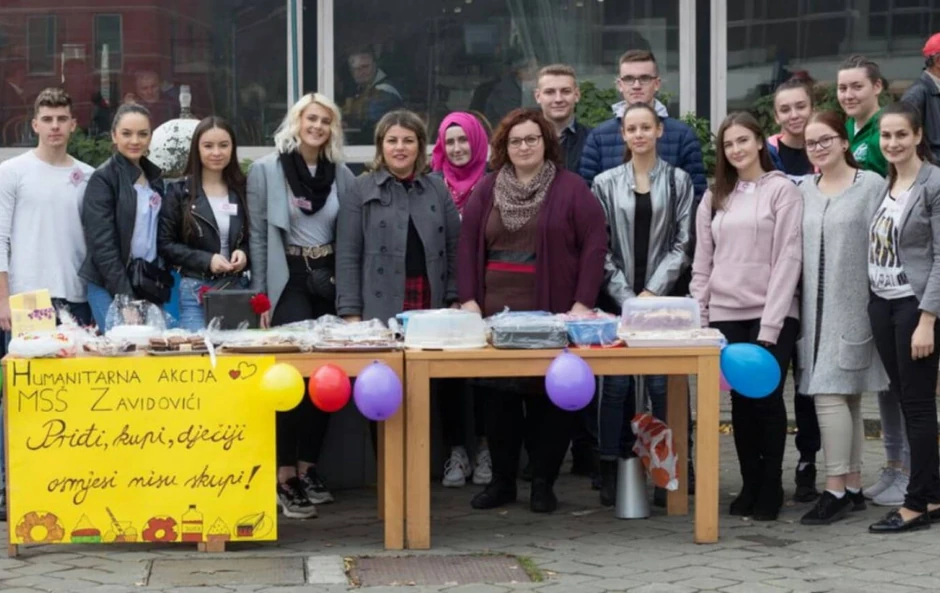 Učenici i profesori Srednje mešovite škole u Zavidovićima organizovali su humanitarnu akciju prodaje kolačića pod nazivom “Priđi, kupi, dečji osmesi nisu skupi”.