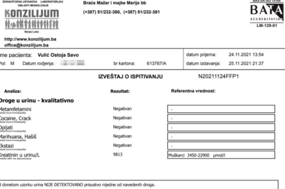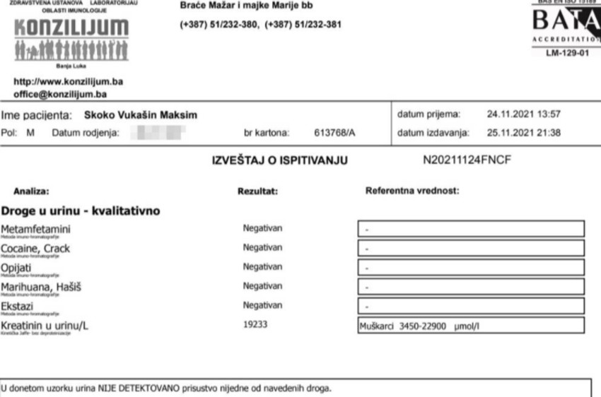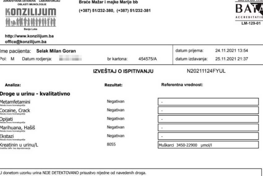 Goran Selak, Maksim Skoko i Savo Vulić obavili su testiranje i dobili negativne rezultate, piše Srpskainfo.