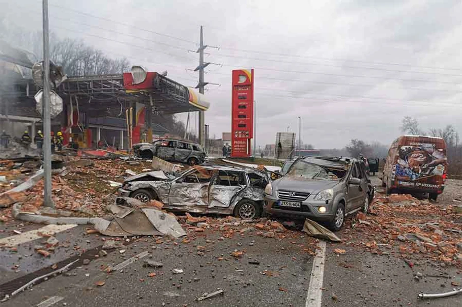 Objekat spaljen do temelja, uništeni automobili, vatra koja još uvek bukti prizor su koji bukvalno ledi krv u venama.
