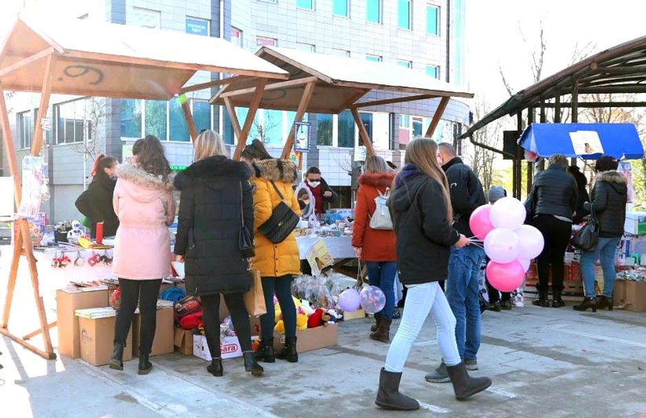 Na humanitarnom bazaru "Prnjavor za Minju" danas je na nekoliko štandova na gradskom trgu prodajom raznih proizvoda i predmeta prikupljana novčana pomoć za lečenje jednogodišnje Minje Matić.