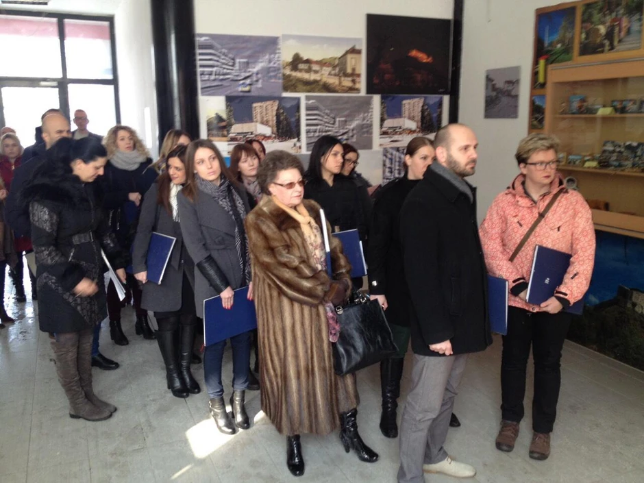 Nastavnici i učitelji OŠ “Dositej Obradović” iz Doboja došli su danas sa dnevnicima u rukama pred zgradu gradske Skupštine u Doboju.