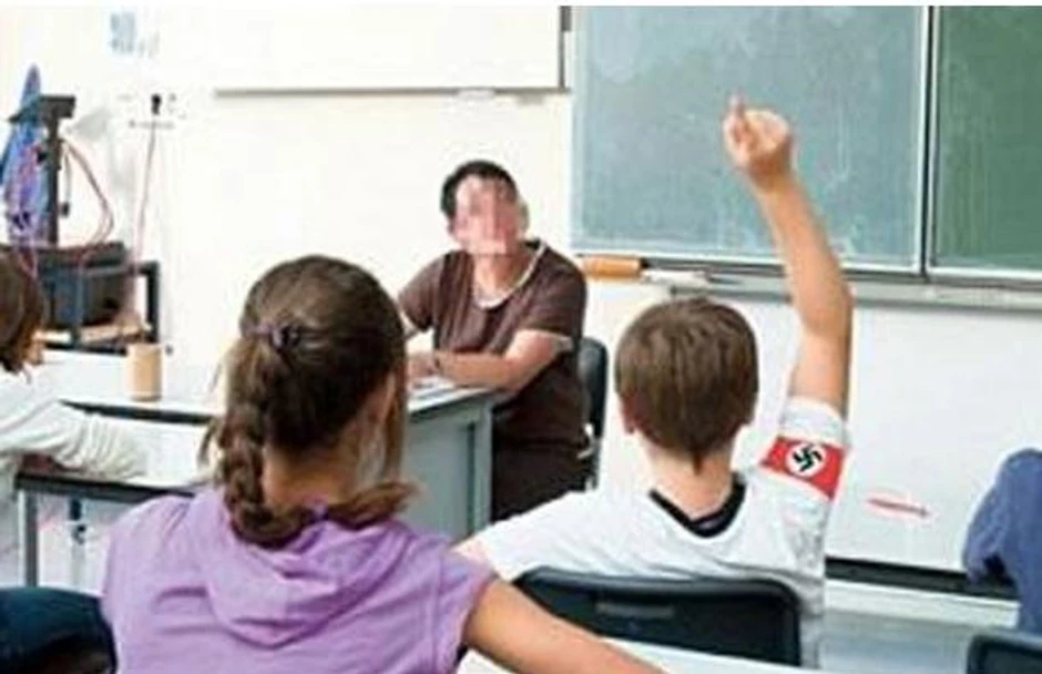 Tekst pod naslovom "Alarmantan podatak: U Republici Srpskoj sve manje osnovaca" uz fotografiju na kojoj učenik na rukavu nosi nacistički znak portal 24sata.info objavio je u subotu, 9. februara.