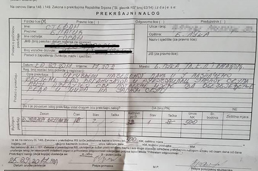 Stefan Blagić lider Organizacije „ReStart“ Srpska dobio je prekršajni nalog jer kako je navedeno, u nalogu nije preduzeo sve potrebne mere za obezbeđivanje reda i mira na nedavno održanim protestima.