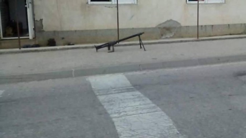 U Ulici Petra Kočića, u Prnjavoru prolaznici su juče uočili mitraljez koji je ostavljen na trotoaru pored kuće.