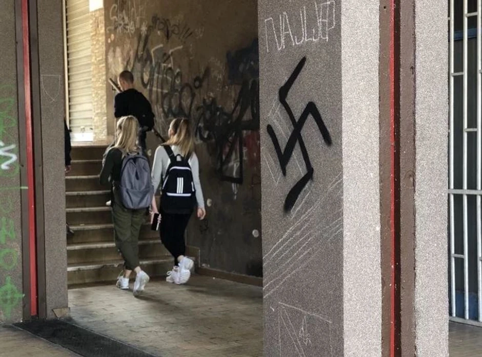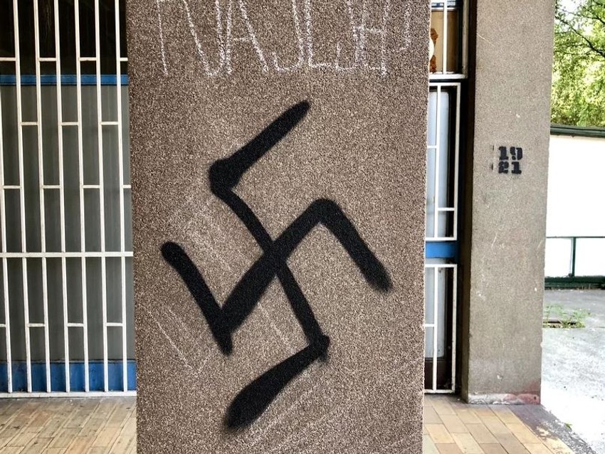 U ulici Hamdije Ćemerlića između broja 47 i 49, u sarajevskom naselju Grbravica, nepoznata osoba iscrtala je kukasti krst na jednom stambenom objektu.