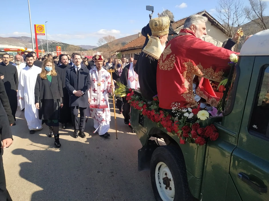 Jutro u Trebinju počelo je prepunom crkvom, opelo je služio mitroplit dabro-bosanski Hrizostom, koji je i izaslanik patijarha Porfirija, uz sasluženje episkopa žičkog Justina i vladika Grigorija, Joanikija, zapadnoameričkog Maksima, niškog Arsenija, južnocentralnoameričkog Kirila, dioklijskog Metodija i zahumsko-hercegovačkog i primorskog Dimitrija.