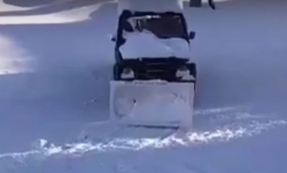 U borbi sa snegom, a u nedostatku aktivnih grtalica na terenu, jedan vozač je odlučio da ne prednji deo svoga džipa postavi staru kadu i tako očisti sneg.
