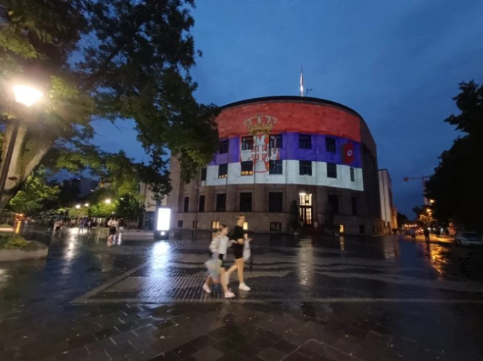 Palata Republike u Banjaluci večeras je osvetljena u bojama zastava Republike Srpske i Srbije, povodom obeležavanja Dana srpskog jedinstva, slobode i nacionalne zastave.