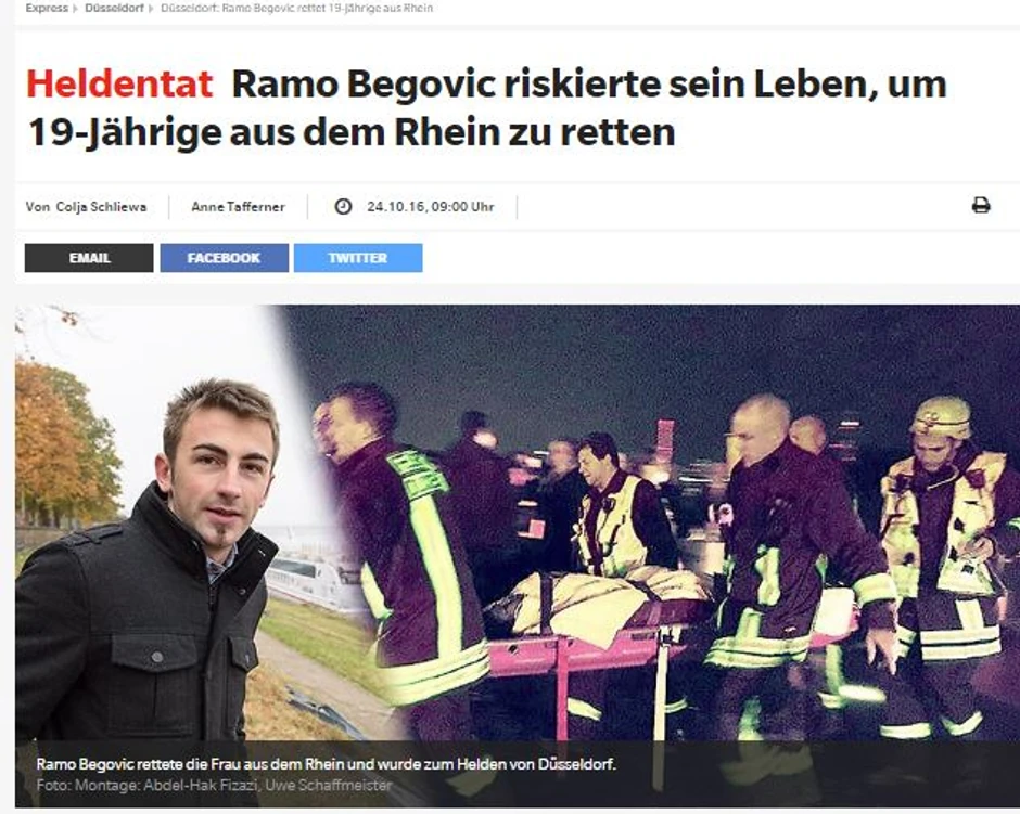 Ramo Begović (25), iz Jablanice u BiH, spasio je devojku Anju B. (19) od utapanja u Rajni, u Dizeldorfu, u Nemačkoj.