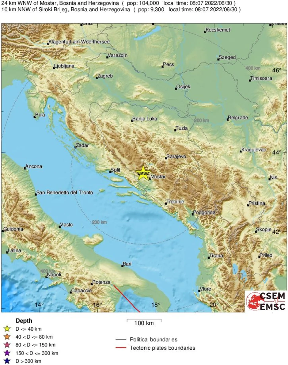 Snažni potres zatresao je hercegovačko područje. Prema prvim informacijama, magnituda je bila 4,8, piše EMSC.