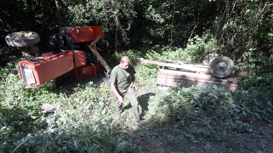 Na mestu tragedije zatekli smo prijatelja pokojnika i lugara, Žarka Šešića, koji je u neverici posmatrao prevrtnut traktor i prikolicu.