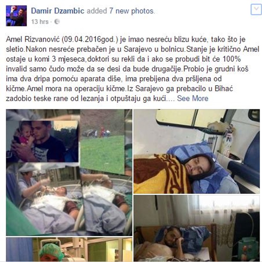 Nakon velikog broja apela upućenog na “Fejsbuku”, Amel Rizvanović iz Velike Kladuše, koji je u teškom zdravstvenom stanju pušten na kućno lečenje iz bolnice u Bihaću, ponovo je primljen na bolničko lečenje, ali u bolnicu u Tuzli.